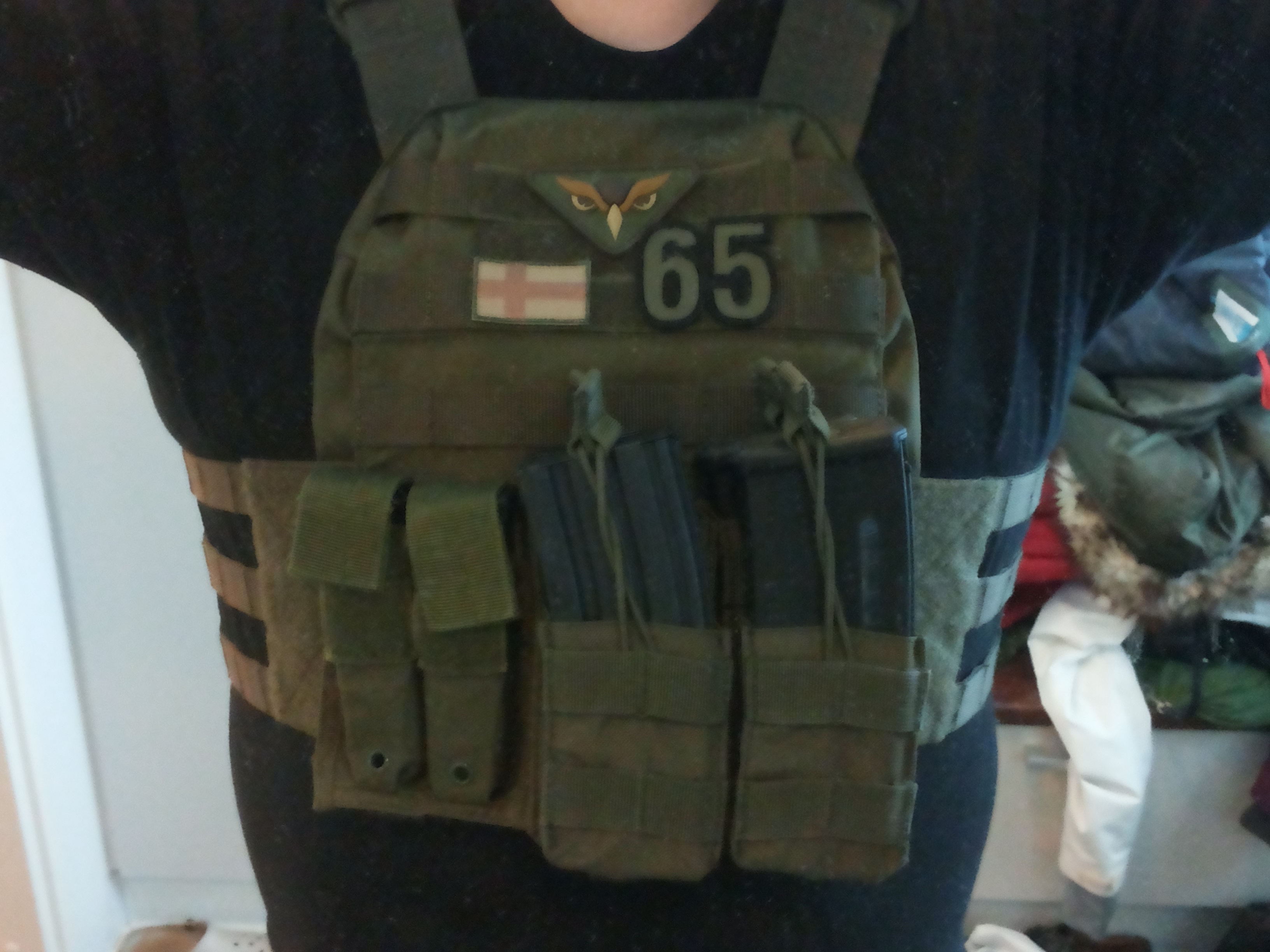 Etuosa kannattaa varata pienelle määrällä ammustarviketta. Tuommoin max 4 kiväärin ja 2 sivuaseen lipasta pitäisi olla se “oikea määrä” platecarrierissä kannettavaksi. Tähän lisänä vain sidetarvike, niin platecarrienrin TST täyttö on tehty. Ylös rintaan voi laittaa matalan admintaskun, mutta ei mitään sellaista, joka häiritsee aseen siirtoa oikealta puolelta ampumaasentoon vasemmalle, ja päinvastoin. Edelleen taskut rinnan puolella pitäisi pitää mahdollsimman matalana, niin että mahaltaan ampuminen onnistuu kunnolla. Samoin makuu asennosta on vaikea saada lippaita suoraan ruhon alta. Siksi lipastaskut cummerbundin vasemmalla kyljellä eivät ole varsinaisesti huono asia.Vaikka paikka ei ole oikein optimi sielläkään.