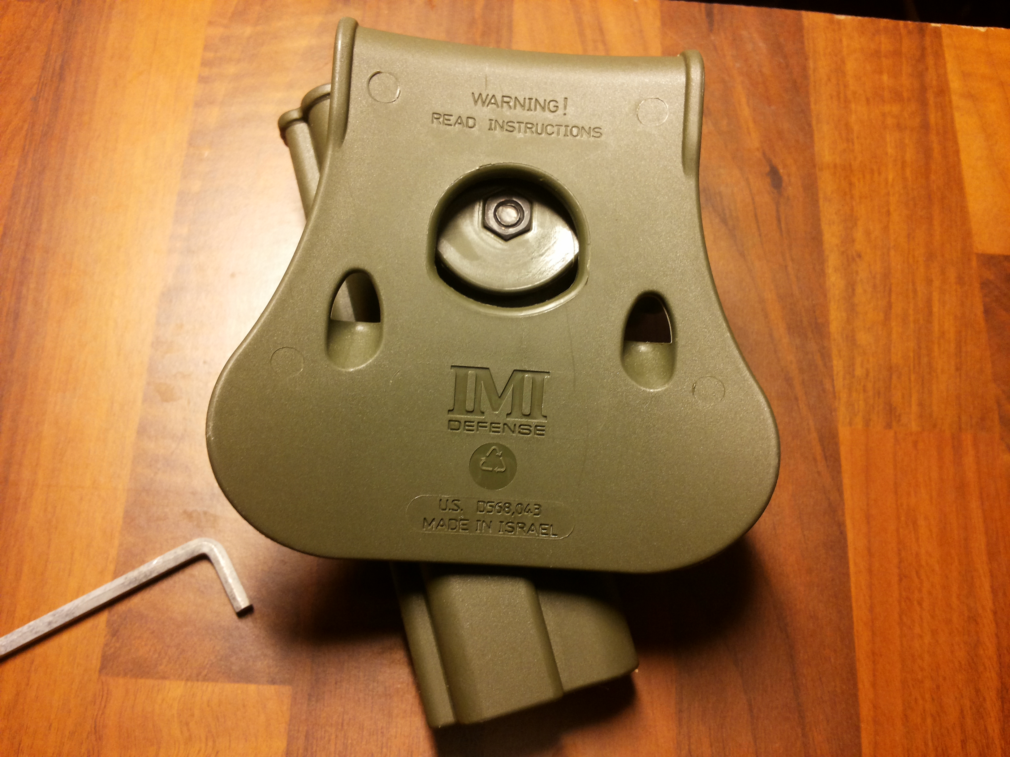 Perusvaihtoehtona IMIllä koteloissaan on padlle, eli mela tyyppinen ratkaisu, jossa housuja vasten tulee se “mela”, ja vyö kiristetään vakoon padlen ja varsinaisen kotelon välissä. Kotelo on siis käytössä mukava, mutta ei ole yhtä hyvin kätkössä, kuin vastaava housunkauluksen sisälle tuleva koteloratkaisu. Jäykän, hyvän vyön kanssa kotelo istuu tiukasti paikallaan, ja on helppo säätää haluttuun paikkaan vyöllä. kuvassa kotelo ehkä liian edessä. Ainakin ns “concealed carrya” ajatellen. Yleensä suositaan aseen oloa suoliluun takana, jolloin vartalon ääriviiva peittää aseen lantion takana.