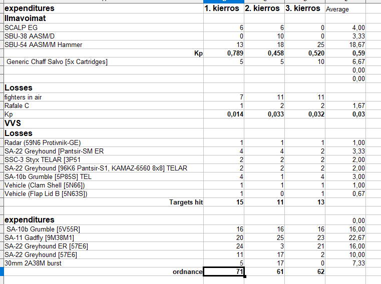 One thing about the video: The lost Rafale C. I have no clue WHY it started doing honor laps around the island. I had ordered it away, and to drop a couple of AASM on the S-300. It did neither. So it is quite possible, that it is just a hick up in the simulation. I do know SPECTRE system is really top notch protection suite, but obviously you cannot rely on it keeping your plane safe no matter what. It seems to me that when planes are flying in formations of 3 Command lets the one fly off to some direction, and it is quite hard to command single plane (if it is a part of the flight) to change directions. Thus I think 2 losses for Rafales in rundown are due the simulation SW, rather than the plane.