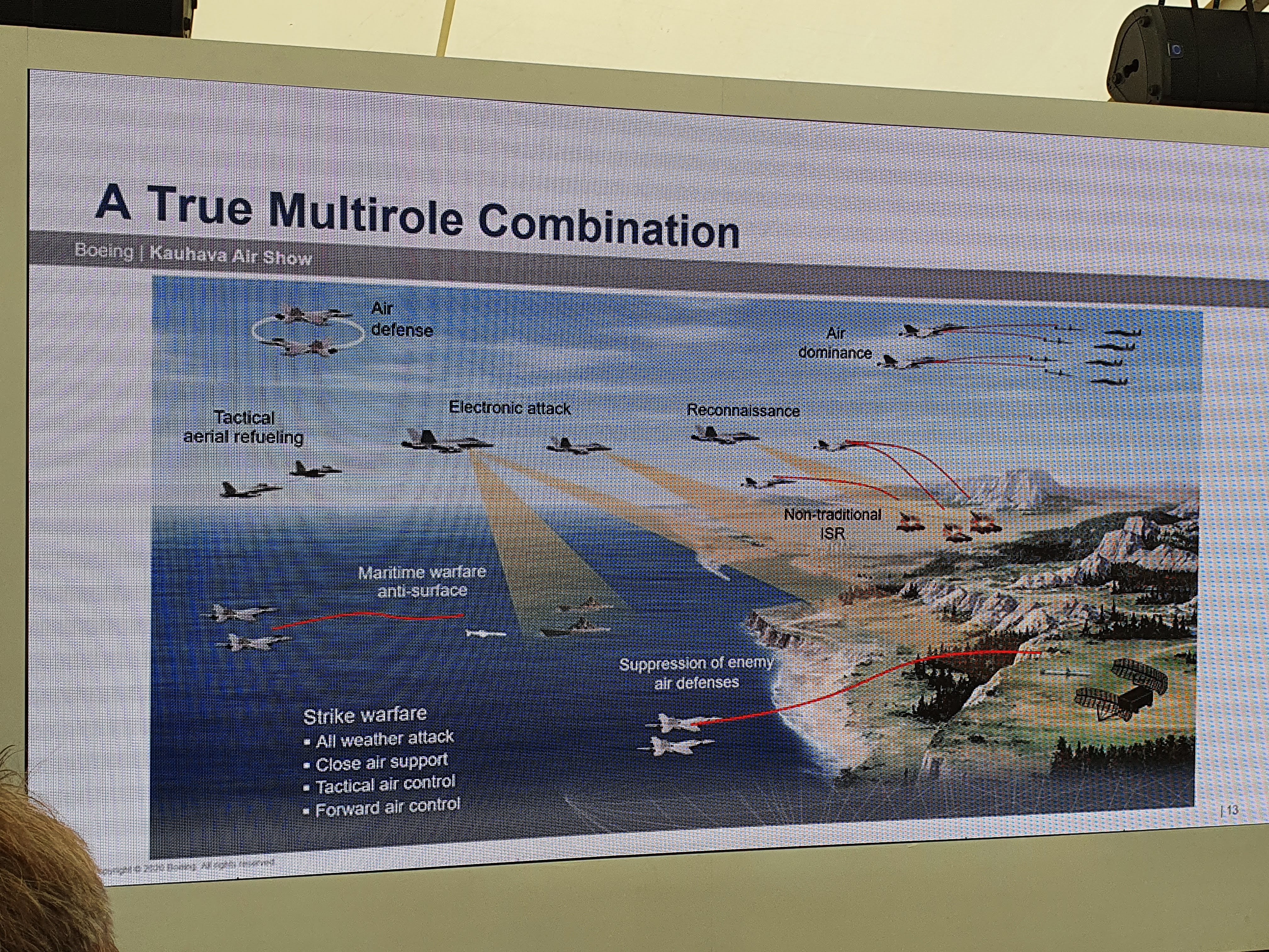 Boeing and F/A-18 E/F/G was also present in strenght and I had good fortune to speak about Loyal Wingman (Air power teaming system ) as well in Boeing booth. At this stage Loyal wingman is not, yet, part of HX-bid but very likely be part of future MLU update. Loyal wingman is basically a unmanned fightersize and capable drone. It’s main duty is to fly forward of the controlling fighter and use it’s sensor suite to pick targets for the fighter.