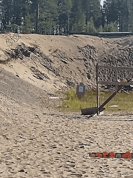 Kuten oli odotettavaa, tähtäintä sai kävelyttää aikapaljon, 35 napsua, alaspäin (Napsuväli on tässä tähtäimessä yksi kulmaminuutti) ja tähän suorituykseen menikin sitten yksi rasia täyteisiä. Ammuin aina kuitenkin kolme laukausta vähentääkseni satunnaisen poikkeaman vaikutusta suoritukseen.