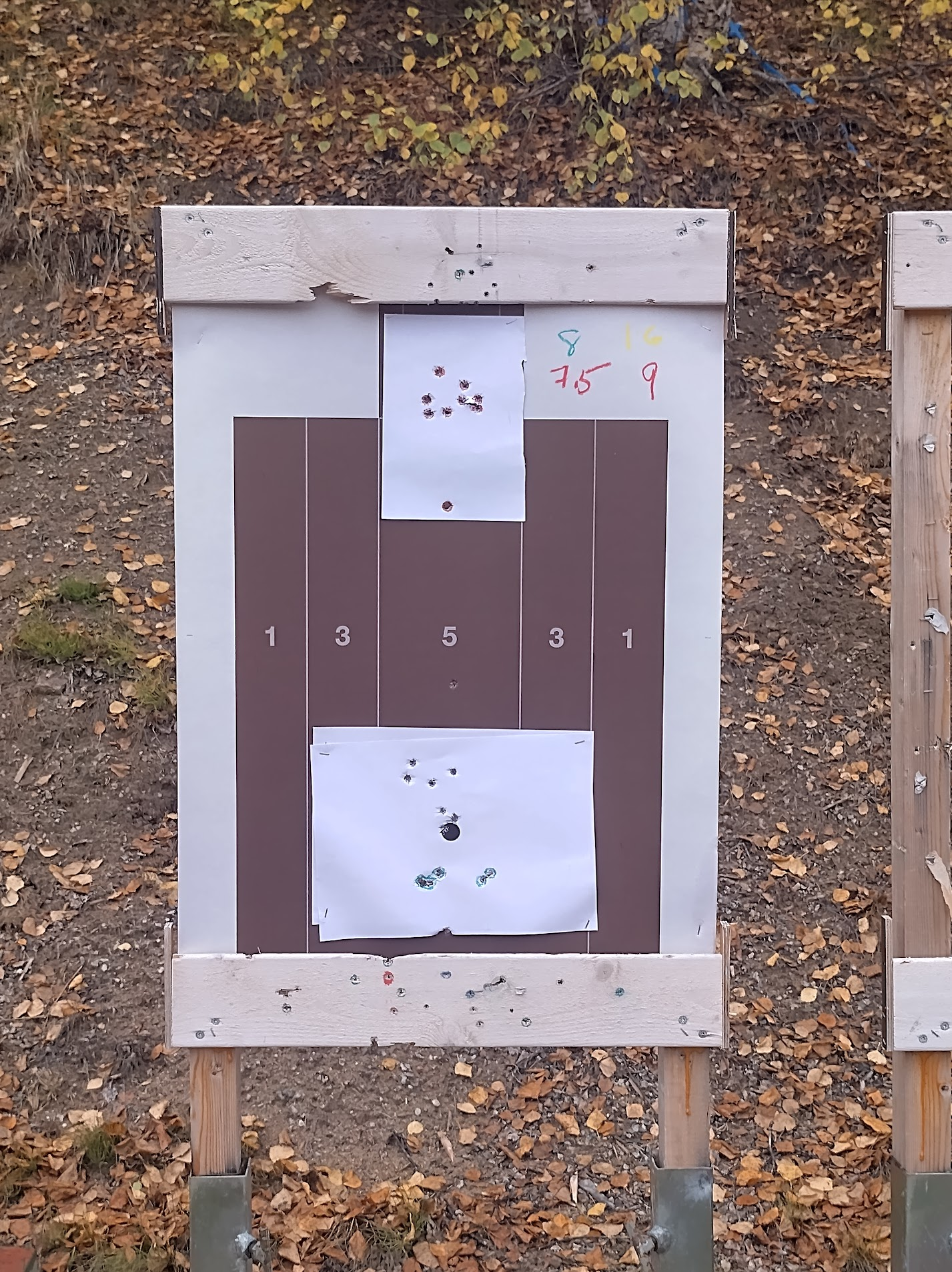 0 ammunan tarkoitus on koittaa ampua kasaa, jotta saadaan tähtäys mahdollisimman kohdilleen. Itsellä vaikutti CZ-75 Compactin koko: En saanut oikein hyvää ampumaasentoa kädelle. Joko peukalohanka tai pikkusormi oli kahvalla huonosti. Joka kasaan tuli ainakin yksi kunnon kärpänen vaikka muuten oli kohtuulliset kasat.